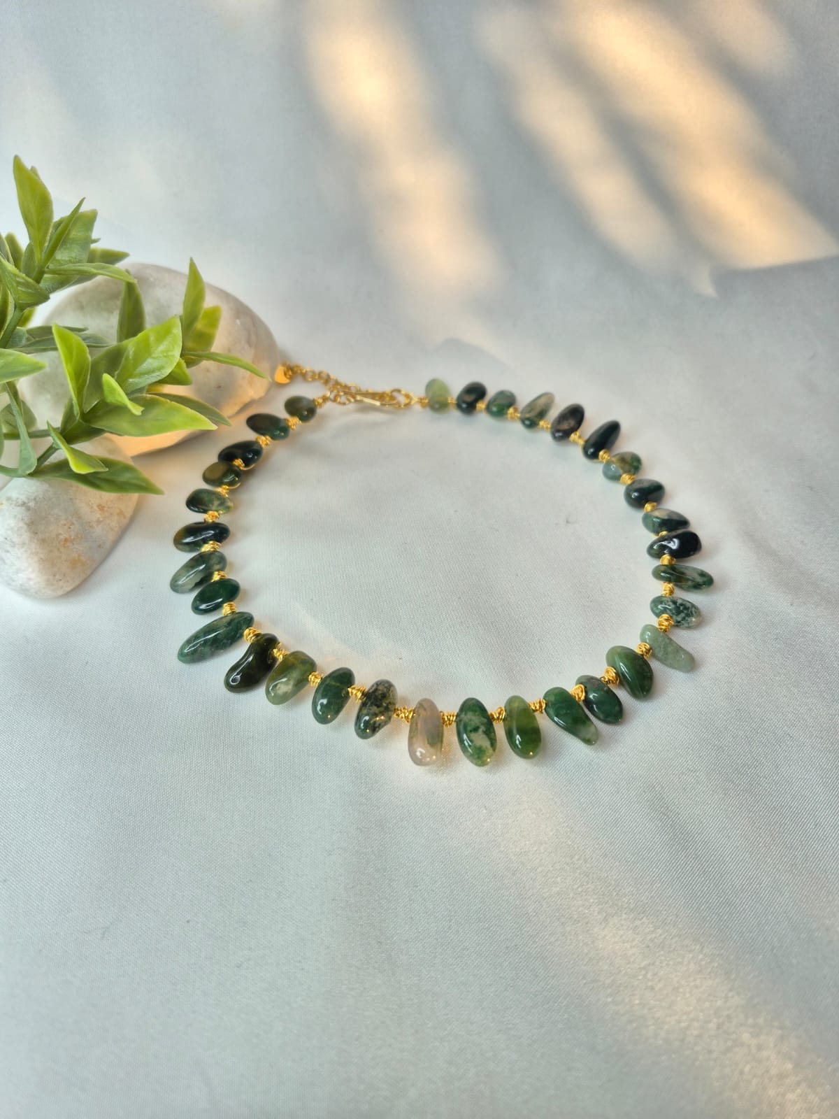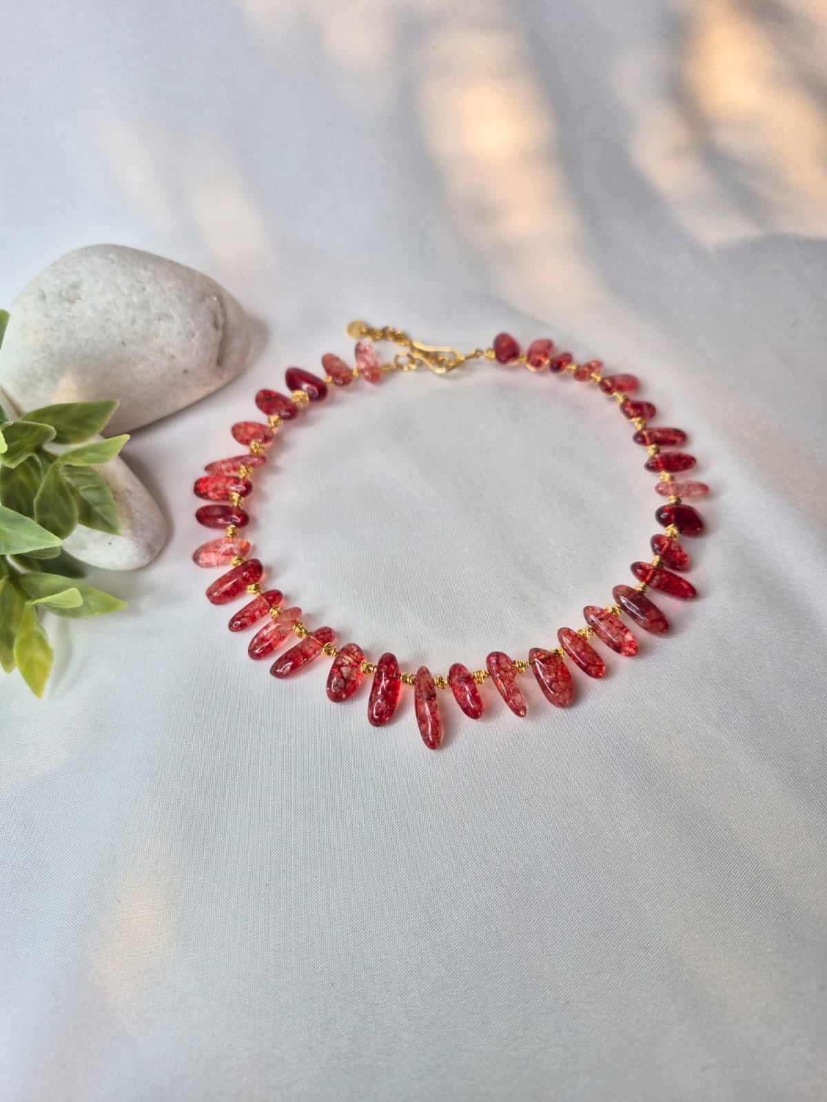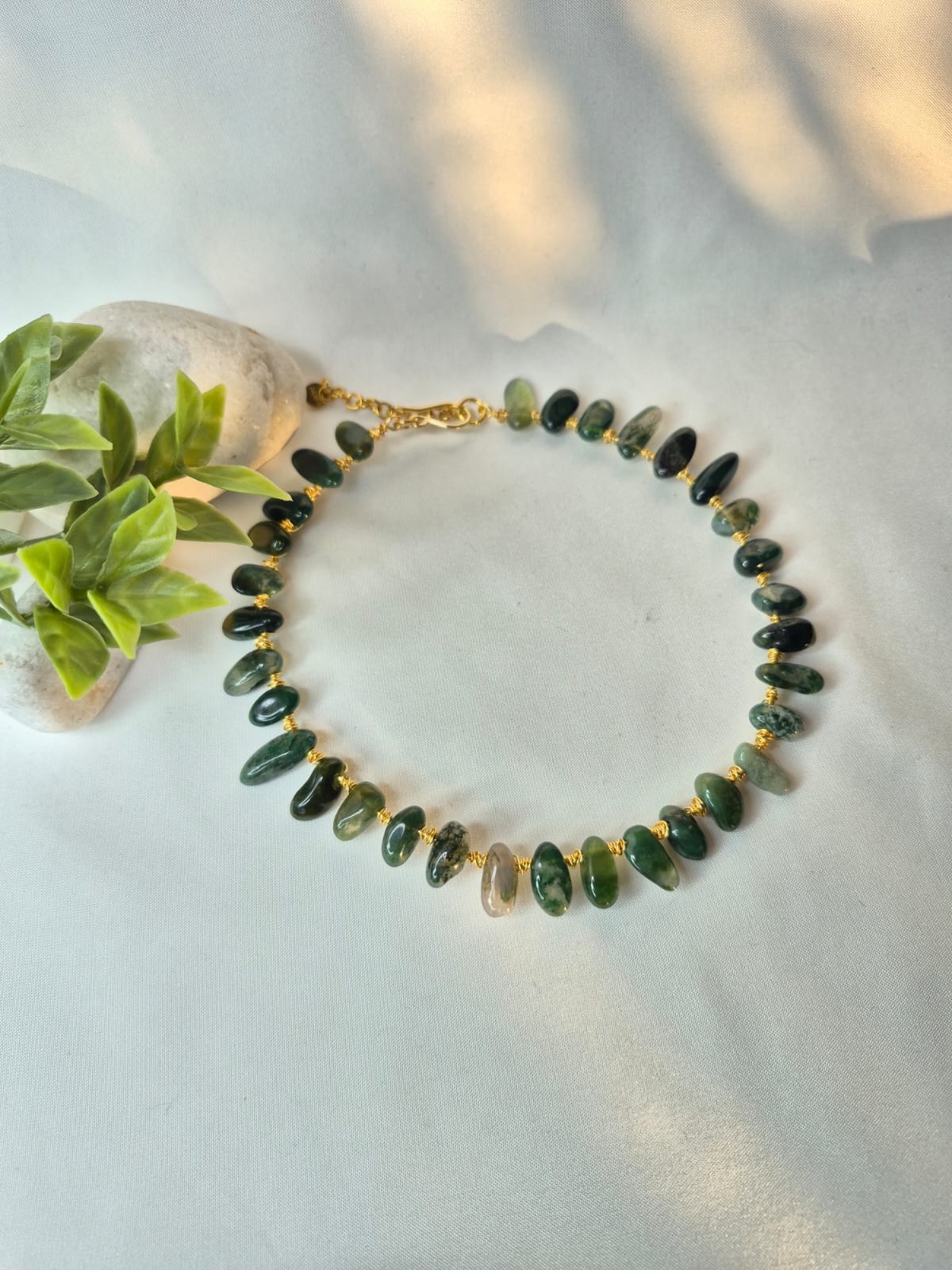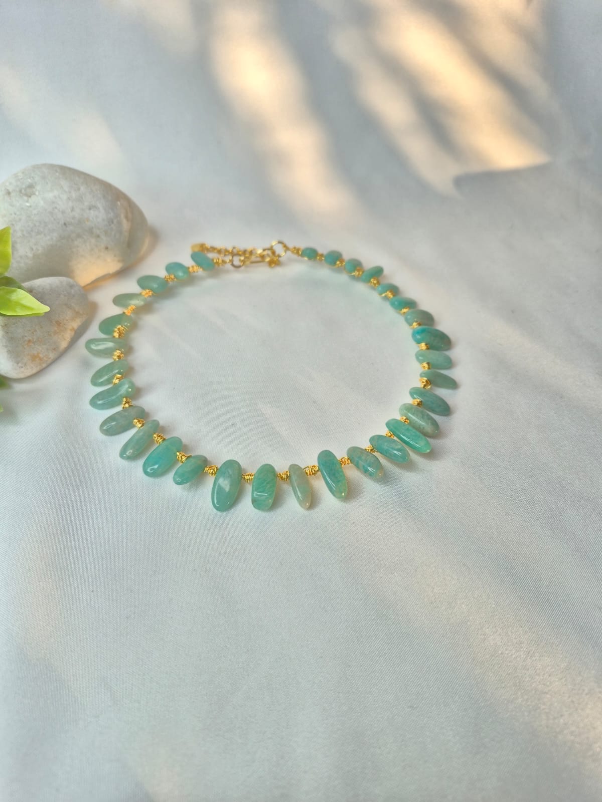 Cada pieza está montada sobre una base de hilo de cobre bañado en plata, recubierto con una capa protectora para mayor durabilidad. Los hilos utilizados son resistentes al uso y a la oxidación, mantienen su color y son hipoalergénicos, pensados para acompañarte con comodidad.